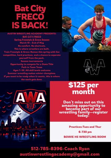 Tournaments: Singlets ($75), AWA Team Gear, wrestling shoes, and headgear (optional)